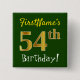 Green, Faux Gold 54th Birthday, With Custom Name Button