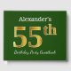 This guest book design features the ordinal number "55th" with a faux gold-like appearance. It also features a custom name, and a green colored background. It could be used at a party for somebody celebrating their fifty fifth birthday. [~Z0000056]