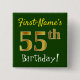 Green, Faux Gold 55th Birthday, With Custom Name Pinback Button