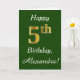 Green, Faux Gold 5th Birthday + Custom Name Card