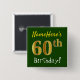 Green, Faux Gold 60th Birthday, With Custom Name Pinback Button