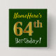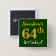 Green, Faux Gold 64th Birthday, With Custom Name Button