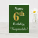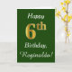 Green, Faux Gold 6th Birthday + Custom Name Card