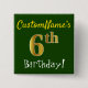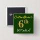 Green, Faux Gold 6th Birthday, With Custom Name Pinback Button