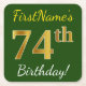 Green, Faux Gold 74th Birthday + Custom Name Square Paper Coaster