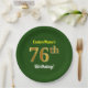 Green, Faux Gold 76th Birthday + Custom Name Paper Plates