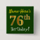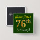 Green, Faux Gold 76th Birthday, With Custom Name Pinback Button