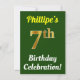 Green, Faux Gold 7th Birthday Celebration + Name Invitation