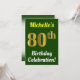 Green, Faux Gold 80th Birthday Celebration + Name Invitation