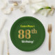 Green, Faux Gold 88th Birthday + Custom Name Paper Plates