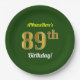 Green, Faux Gold 89th Birthday + Custom Name Paper Plates