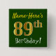 Green, Faux Gold 89th Birthday, With Custom Name Pinback Button
