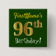 Green, Faux Gold 96th Birthday, With Custom Name Pinback Button