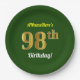 Green, Faux Gold 98th Birthday + Custom Name Paper Plates
