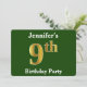Green, Faux Gold 9th Birthday Party + Custom Name Invitation