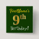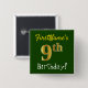 Green, Faux Gold 9th Birthday, With Custom Name Pinback Button