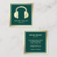 Green Faux Gold Foil Headphones Music DJ Square Business Card