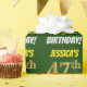 This wrapping paper design features a message like "JESSICA’S 47th BIRTHDAY!", with the "47th" having a faux/imitation gold-like color appearance, and with the name and "BIRTHDAY" in a fun, bold font. The name can be customized, and the background is colored green. Wrapping paper like this could perhaps be used when wrapping birthday gifts being given to somebody in celebration of their forty seventh birthday. [~Z0000208]