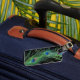 Green Feathers with Black Luggage Tag