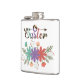 Green fern and colorful flowers with cute bunny- Happy Easter. Customizable flask template