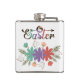 Well made flask, a little better than I had expected. Flask came in clear plastic box which gave it a nice presentation when I took it out of the zazzle packaging. Image is not printed on flask but on sticker. Don't know how this will hold up I haven't used it yet. This would make a Great gift! I plan to purchase more for friends! Cheers. I thought a little brighter than computer. Very crisp, writing wasn't