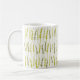 A coffee mug with a delicate pattern of mixed green ferns on an ivory background. Perfect for a plant lover gift.