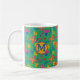 Enjoy your morning cup of coffee with this customized Mexican-inspired floral patterned mug. The bright colors and geometric folk art set against the bright green mug, are sure to brighten your day. Personalize this mug with your initial in your choice of font and color.