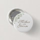 Classic French regency green fleur de lis pattern, mother of the groom, script font in dark taupe, button. The perfect addition to the mother of the groom tote gift bag. Perfect for so many occasions for your mother in law to be... at your bridal shower party, rehearsal dinner or wedding morning. Designed to match our French Regency Green Fleur De Lis Wedding Collection.