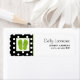 Address labels featuring an illustration of a pair of green flip flops inside white frame with green trim at left. Black background with white polka dots and green trim. Personalize the right side with your name and address. Look for matching stationery, cards, and more at Jill's Paperie.