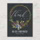 GREEN FLORA FOLIAGE BLACK WREATH WEDDING THANK YOU POSTCARD