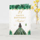 This elegant and glamorous birthday card can be personalized with a name or title such as daughter, granddaughter, niece, friend etc. The design features a beautiful princess with dark hair and dark skin in a green ball gown. The text combines handwritten script and modern sans serif fonts for a classy and sophisticated look. The floral arrangements, butterflies and gold confetti create the perfect blend of rustic and chic.