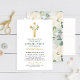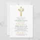 Green Floral Gold Cross Girl First Communion Invitation