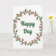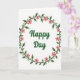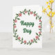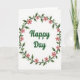 This card shows a white background with a circular wreath of thin green vines and leaves wrapped around the center. Inside the wreath, the words “Happy Day” sit in dark green, flowing cursive letters, placed right in the middle. The wreath is dotted with soft pink blossoms, and each flower has a tiny darker brown center that adds a sweet little detail. The petals look lightly painted, while the leaves and vines appear more solid in color, so the whole design feels gentle and balanced. It has the calm, hopeful feeling of a fresh spring morning, which makes it nice for cheering someone on or reminding them they’re loved. Even though the message is short, it can feel meaningful because it’s like offering a small moment of care and attention. It’s a simple way to say “I’m thinking of you” with ❤️. Share it to send Valentine’s Day feelings in a warm, caring way 🥰.