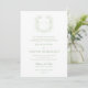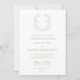 Green Floral Line Art Monogram Crest Wedding Invitation