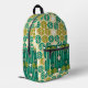 Green floral pattern groovy retro boho Printed Backpack