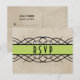Elegant and classy Flourish Border Wedding RSVP Postcard featuring a vintage look background and a fancy swirl and tender shoots green stripe border. This stylish design is the perfect choice for a vintage deco chic inspired wedding. Easy to customize, simply add your wedding details in the text fields provided. Click "Customize It" to find more personalization options.