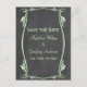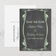 Elegant and trendy Flourish Chalkboard Save the Date Postcard featuring a chalkboard look background and a fancy swirl and leaf art deco border in mint green. Easy to customize, simply add your wedding details. Click "Customize It" to find more personalization options.
