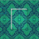 Hand drawn floral arabesque pattern in shamrock green and navy blue colors.
