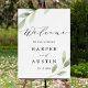 This Wedding Welcome Poster featuring painted watercolor leaves in various shades of green.