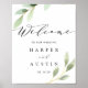 This Wedding Welcome Sign featuring painted watercolor leaves in various shades of green.