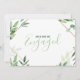 Make your engagement announcement truly special with our Green Leaves Engaged Announcement Party Card. The elegant watercolor-style green foliage, complemented by a tasteful gold/copper border, exudes a sense of natural beauty and sophistication. It's the perfect way to share your joy and excitement with loved ones.