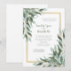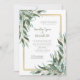 Elegant Script Green Foliage Greenery Wedding Invitation with Gold Frame.