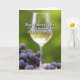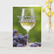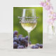 This card shows a clear, tall stemmed glass centered in the scene, filled with a glowing golden drink that catches the light like a quiet toast shared between close family ❤️. Behind it, soft-focus green leaves create a calm garden setting, as if the message is being offered during a relaxed outdoor moment. In the foreground, a clustered pile of deep purple, round fruits rests on a pale surface, with a few scattered pieces that feel like a casual, welcoming spread. The contrast between the purple fruit, golden drink, and green backdrop adds a gentle sense of closeness, like a thoughtful gesture set out with care. Across the upper portion, white text reads “Happy Mother’s Day,” standing out clearly against the darker greens. Below that, also in white, the line “To my wonderful Daughter-in-Law!” is placed nearer the center-right, balancing the glass without covering it 🌼. The focus stays sharp on the glass and fruit while the background remains softly blurred, keeping the attention on the tender, celebratory arrangement. A few individual purple fruits sit slightly apart from the main cluster near the lower edge of the card.