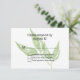 Lovely white wedding response card, with watercolor graphics of green plant leaves, on the front. The back of the RSVP card is done in light green. Personalize the text fields to suit your event needs.