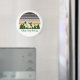 Customize your own family road trip magnet to commemorate your journey through nature this summer or fall. Personalize with your last name in cute cursive script underneath the green forest of trees and dark mountain sunset for a cool vacation keepsake for your outdoor group.
