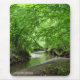 Photograph of a lush green forest, trees and a stream, printed on a Mousepad.