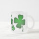 Green Four Leaf Clover Frosted Glass Coffee Mug