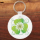 Green Four Leaf Clover with White Floral Bloom Keychain
