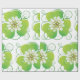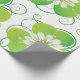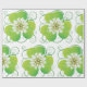 Green Four Leaf Clover with White Floral Bloom Wrapping Paper