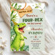 Green Four Rex On The Loose Fourth Birthday Invitation